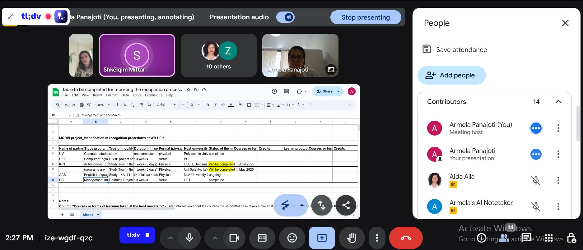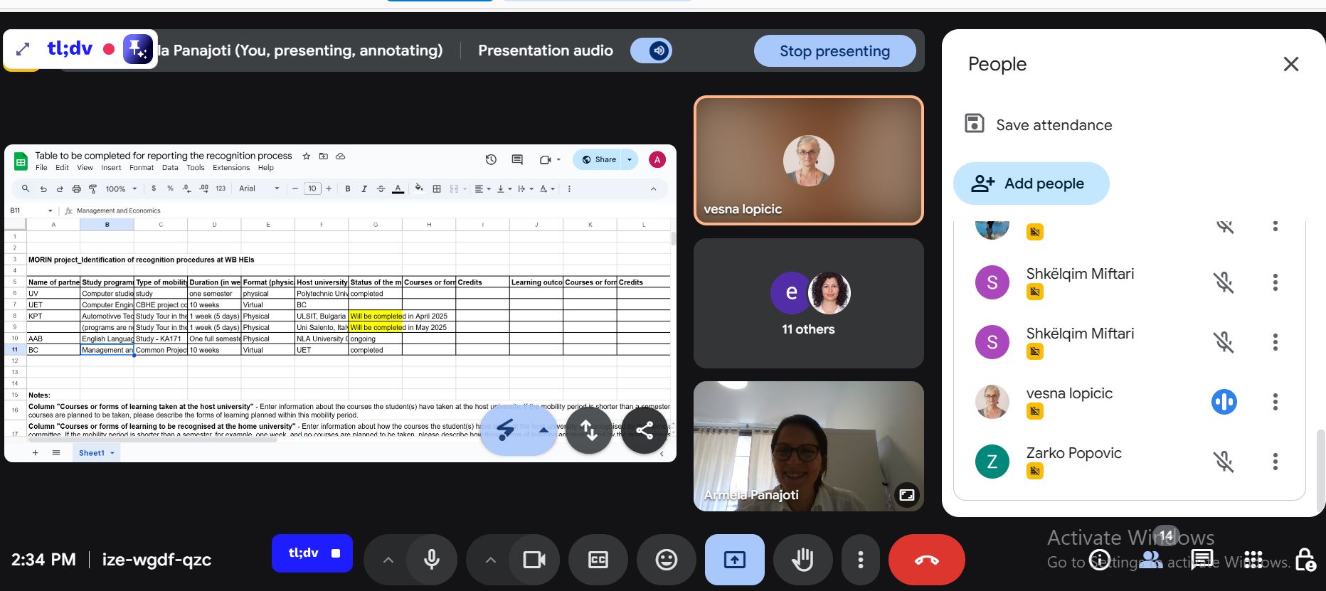 On 9 May 2025, The MORIN project team convened an online meeting aimed at advancing our efforts in recognition procedures across Western Balkan universities. This meeting brought together recognition experts from various partner institutions who form part of the MORIN recognition committes, fostering collaboration and sharing insights on our collective objectives.